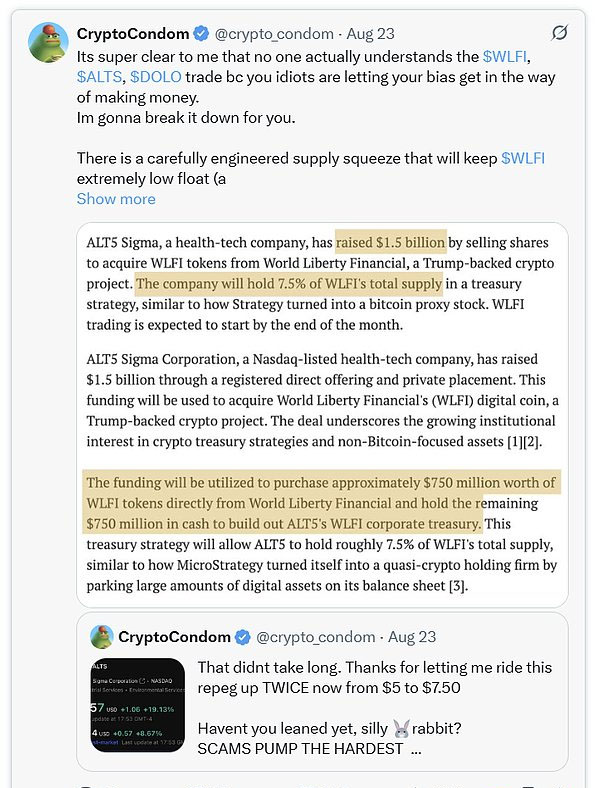 更惊人的是:据传ALT5已获准7.5亿美元用于WLFI专项收购。
