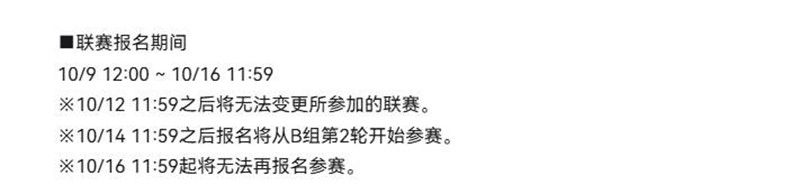 ※10/14 11:59之后报名将从B组第2轮开始参赛。