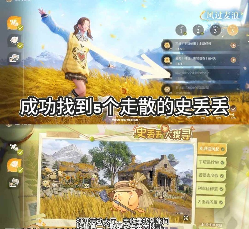 打开活动大厅,丰收季找到旅间收集第二个就是史丢丢大搜寻