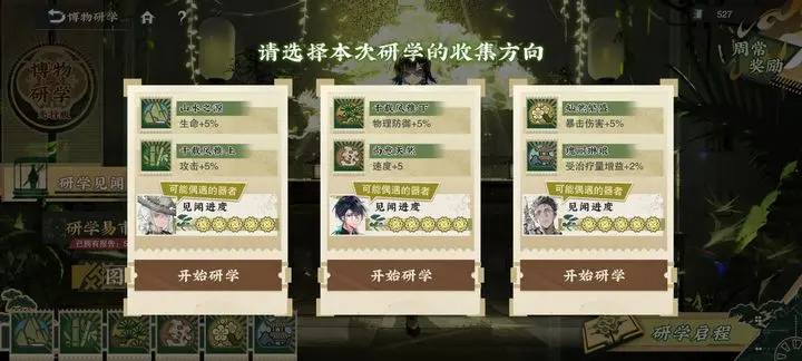物华弥新博物研学模式中需在各个关卡中选择对应的选项,目前关卡有雪景寒林图、千里江山图、溪山行旅图、阴山岩画、茶叶生产画、洛神赋图、万国全图、聊斋图说、氧气瓶、群山之巅等等。下文收集列举了这些关卡中全部的选项选择正确答案的内容详情!