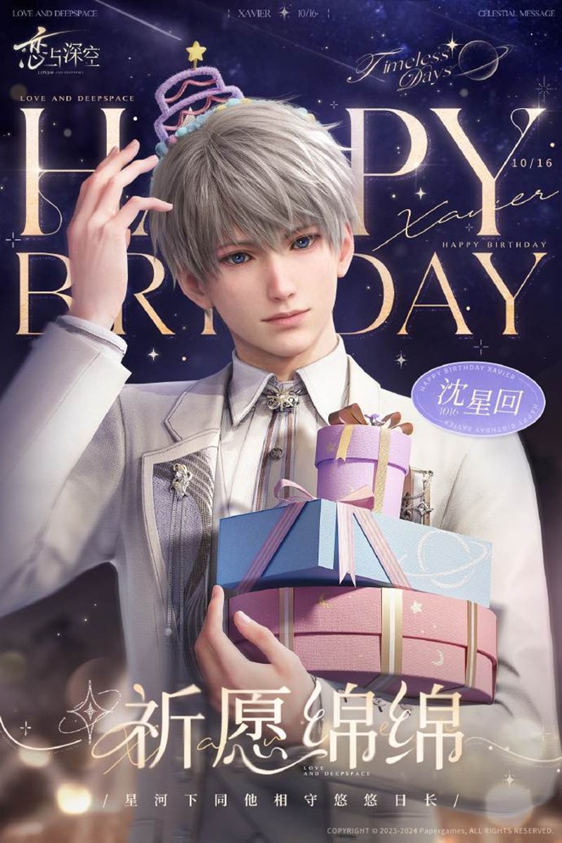 2024年生日限定三星思念「沈星回·祈愿绵绵」、日常服装「沈星回·星夜漫舞」也将同期上架本年度生日活动商店。