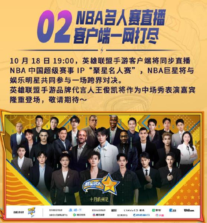 此外,10月18日19:00,《英雄联盟手游》客户端将同步直播NBA中国超级赛事IP“聚星名人赛”,届时NBA巨星将与娱乐明星共同参与一场跨界对决。《英雄联盟手游》品牌代言人王俊凯将作为中场秀表演嘉宾隆重登场,敬请期待。