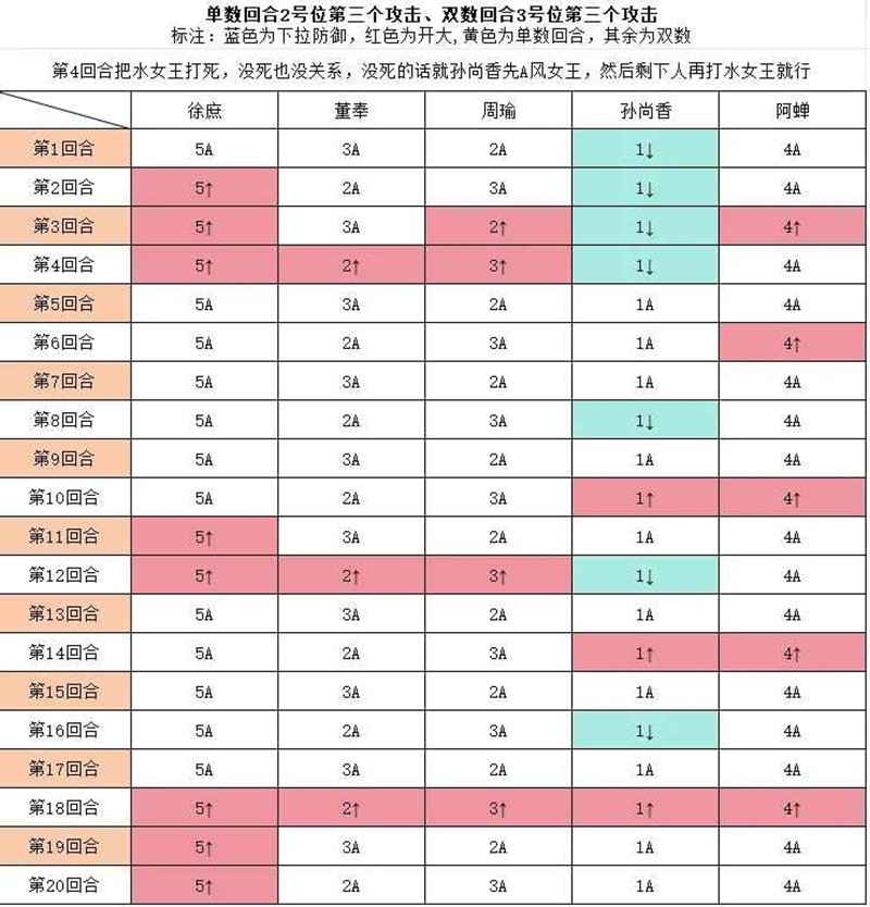 5、尽量第四回合水女王打死,没死也没关系,没死的话就孙尚香先A风女王,然后剩下人再打水女王就行