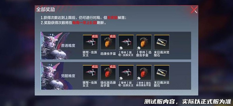 吞噬星空挑战玩法中的虫族女王副本将于10月16日开启,玩家可以再次挑战虫族女王,完成挑战可获得丰富的奖励。其中包括猎弩-虫族女王、末日裁决、迅捷虫手雷、强化版迅捷虫手雷、末日裁决觉醒石等奖励。