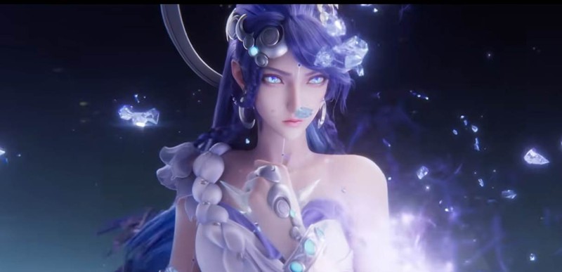 随着紊流能量逐渐失序,合成器中融入更多岩石质感的音色设计,层层推进,引发雪崩般的震撼。短暂的宁静后,如秒针行走般的谧流间奏过渡至恢弘的管弦乐,奏响建木磅礴的主题。神圣而极简的旋律回环上升,如同神明庄严而沉重的步伐,一步步登上通往神庭的天梯,走向彼此的对立,仿佛整个王者大陆的兴衰故事沉淀于此。恢弘之后,谧流旋律再度浮现,象征着女娲与帝俊这场战役未尽的结局。