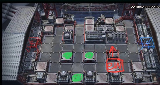 先放一两个高台拖时间攒攒费,最好放在p2中间绿点处离ew远一点。费用够了就在图片位置下ew,等技能期间一直在绿点下高台牵制熊,技能好了无脑开。