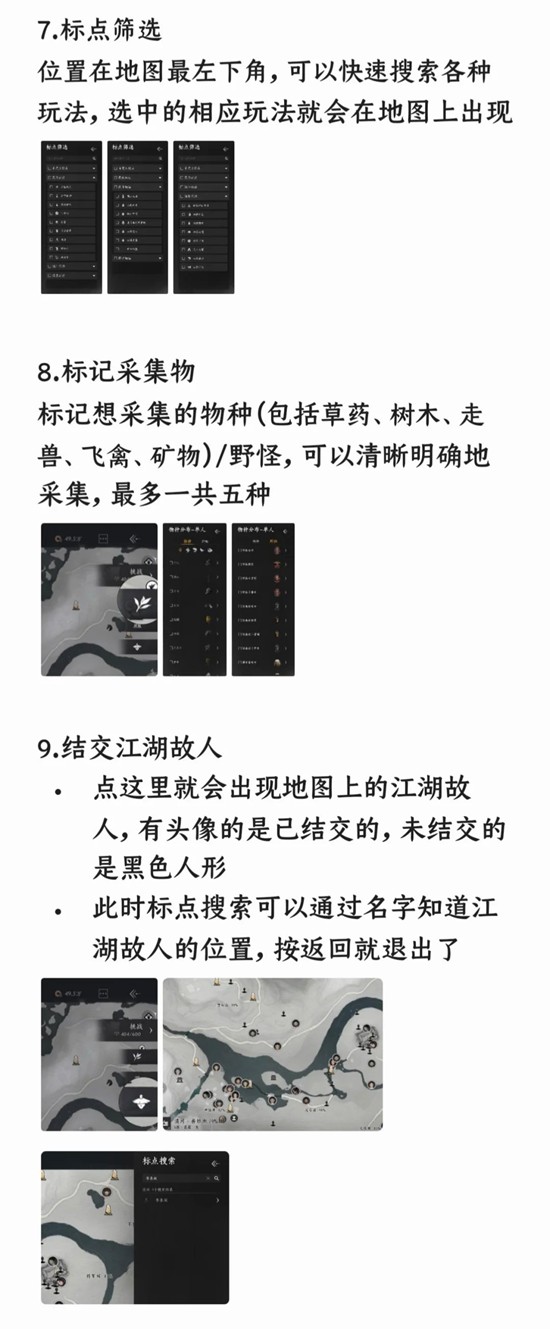 * 会出现地图上的江湖故人,有头像的是已结交的,未结交的是黑色人形