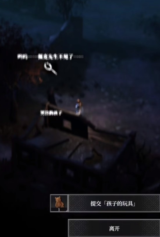 继续前行时,会遇到一名哭泣的孩子。与其互动后得知其玩具被怪物夺走。此时需返回先前的战斗区域,击败特定精英怪以夺回玩具。将玩具归还孩子后,他会主动引导你前往墓地。在指定位置埋葬玩具,将触发两个并行事件:一是进入试验场与守门恶魔对决,二是应对渔夫野兽的突袭挑战。