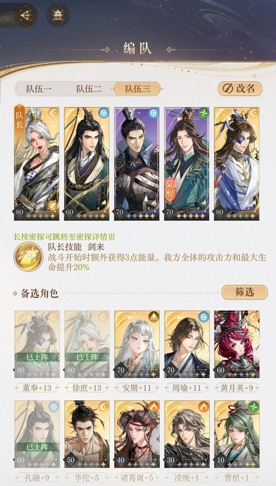 等级:最低60级孔融,最高80级徐神