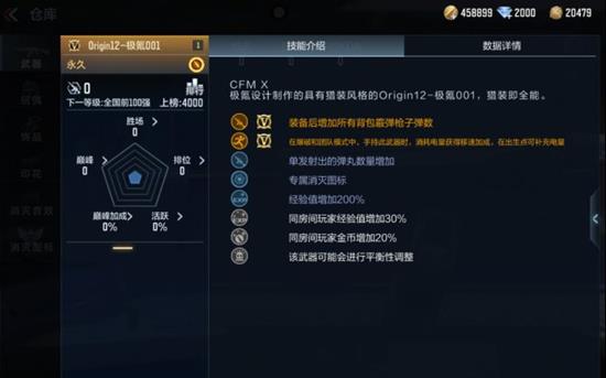 装备Origin-极氪001后能增加所有背包中霰弹枪的子弹数,拥有更持久的火力输出。拥有在爆破、团队模式中,手持武器时可消耗电量获得移速加成,且能在出生点补充电量的电能移速技能,让你在战局中兼具火力与机动性,走位更灵活。