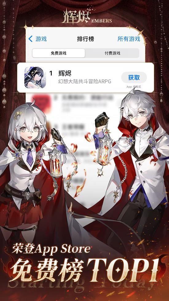 二次元动作新游辉烬于今日正式开启公测,凭借其独特的游戏魅力和卓越的品质,迅速在各大平台掀起了一股热潮。游戏上线仅数小时,便成功登顶App Store免费榜第一,展现了其强大的吸引力和玩家的高度期待。