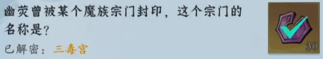 3、幽荧曾被某个魔族宗门封印,这个宗门的名称是?三毒宫