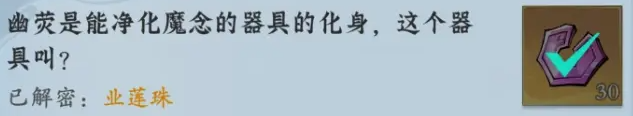 4、幽荧是能净化魔念的器具的化身,这个器具叫?业莲珠