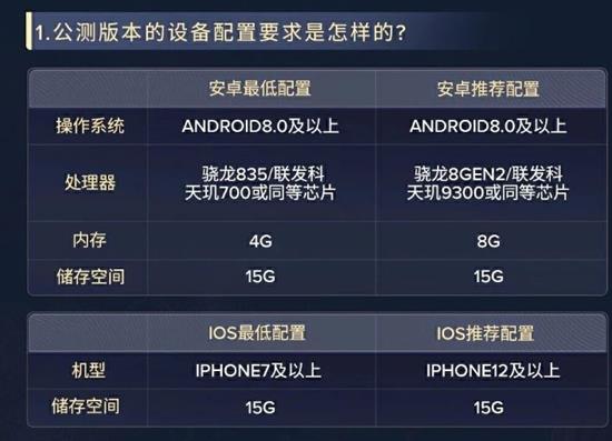 最低配置:操作系统:ANDROID 8.0及以上处理器:骁龙835/联发科天玑700或同等芯片内存:4G存储空间:15G