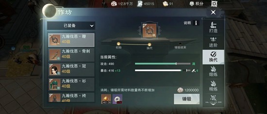 1.装备换代需要天工 高级萃石 换代还可以继续锤锻获得面板建议换代顺序主武器 副武器 护腕 手镯 戒指 鞋子