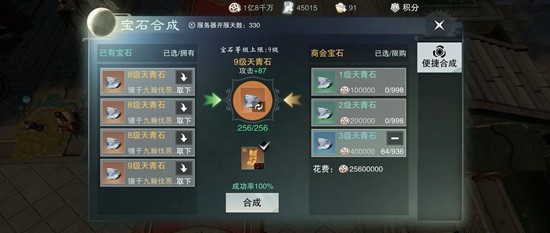 3.宝石等级开放九级,合成符需要打本获取优先推荐攻击属属功宝石合成