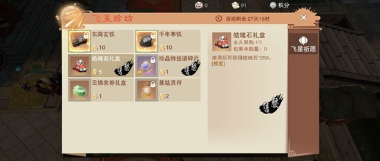 4.神机万象需要新材料可从商城特惠铜钱礼包或者新活动飞星兑换,优先追求评分开孔,开完优先装备二星三星少词条先用,后续追求四星多词条为主(很看脸),其次还可以强化跟装备新特技。