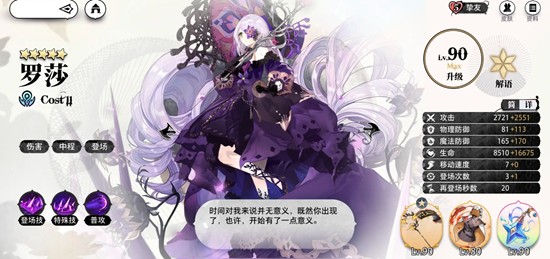 当玩家度过开荒阶段,进入中期内容后,可以考虑转型为湮灭流阵容。这一流派以高爆发的群体法术伤害为核心,主打快速清场。罗兰朵是该体系的关键角色,她的普通攻击即可造成范围伤害,并附带吸血效果,三次10秒内免死的机制让她在战场上具备极强的生存能力。其登场技还能击退敌人并打断技能,有效干扰敌方关键单位。