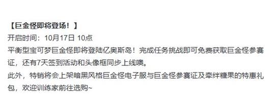 10月17日起,《宝可梦大集结》将带来一系列精彩更新,巨金怪的登场和丰富多样的道具外观,将为你的集结之旅增添更多乐趣,感兴趣的小伙伴可以期待一下。