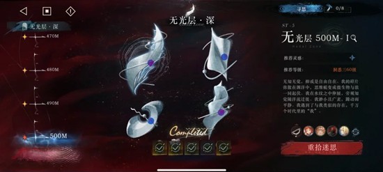 今天深眠更新我迅速横扫完战场下定决心一定要凹过这个500m,直到又凹了两遍依旧遗憾退场时,主播决定把蘑菇狂想成薪血尝试薪血队,点开一看好家伙,爱兹拉竟然只狂想了一半,于是我又检查了一下其他角色,好嘛原来花环也没有放共鸣在匆忙拉满属性之后终于也是轻松推掉这个迷思海500m了