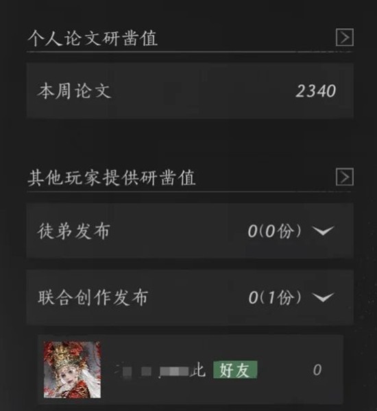 目前共有四种方式可以获取功绩,第一种为自己的论文值,满值4800,第二种是联合创作,邀请好友挂名,建议互挂双方收益更高更方便,并且挂名研凿值收益是在挂名后计算,因此推荐各位在论文值为0时开始挂名,第三种为徒弟创作,自己门下如果有徒弟也在墨山道那么你也会获取研凿值。第四种就是常见的门派任务