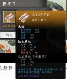 到永安城,找严世豪(好感度≥300),奖励:五彩绣花鞋(女性限定,高移速角色使用)