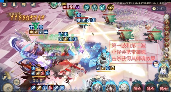 1.第一波和第二波小怪会携带御魂,击败后会获取其御魂效果,有破势伤害会很高(轮入道+破势更优)