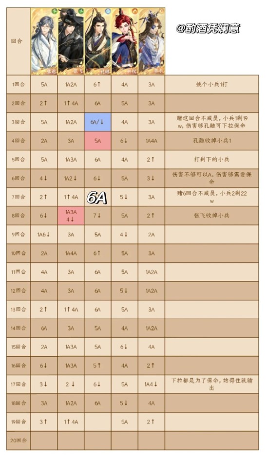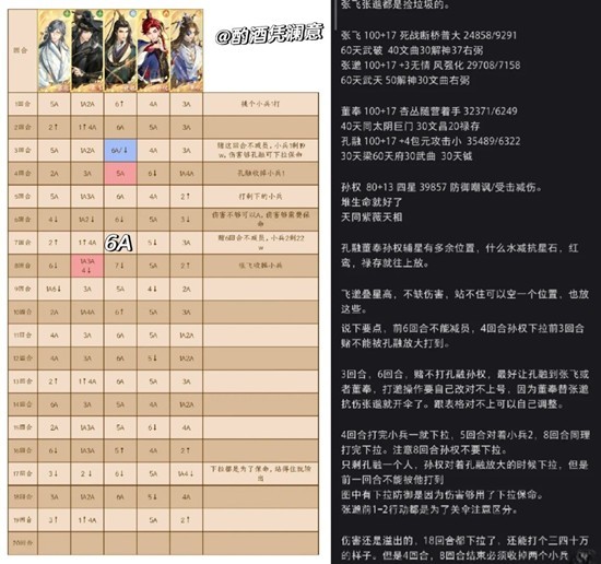 3回合,6回合,赌不打孔融孙权,最好让孔融到张飞或者董奉,打邈操作要自己改对不上号,因为董奉替张邈抗伤张邈就开伞了。跟表格对不上可以自己调整。