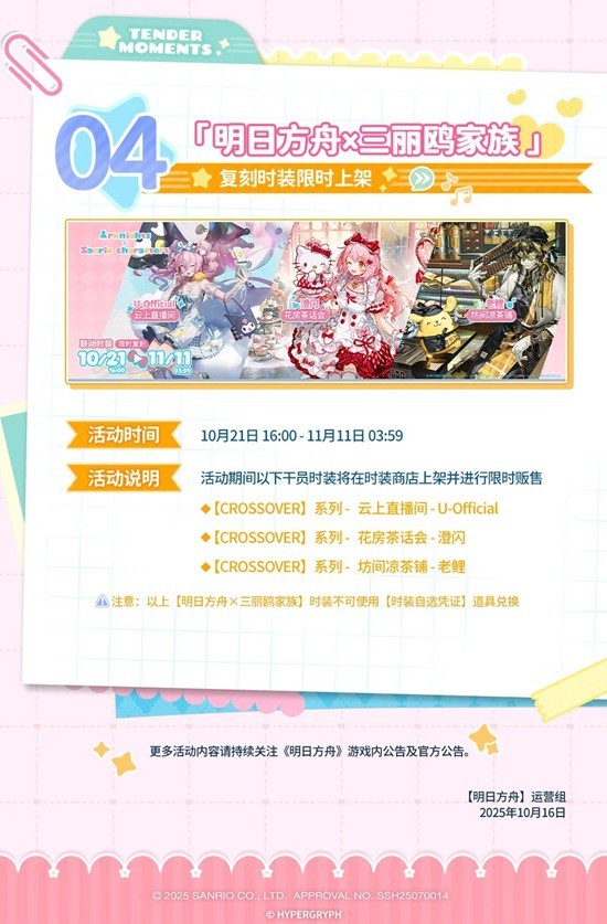 四、【明日方舟×三丽鸥家族】复刻时装限时上架