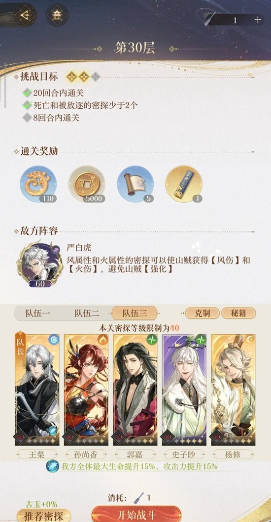 闲来无事出个地宫30平民攻略,只有二星通过噢!保证不了八回合过[哭惹R]我退游了一段时间很多密探都没有,同样很平民的宝宝可以看看我的攻略。