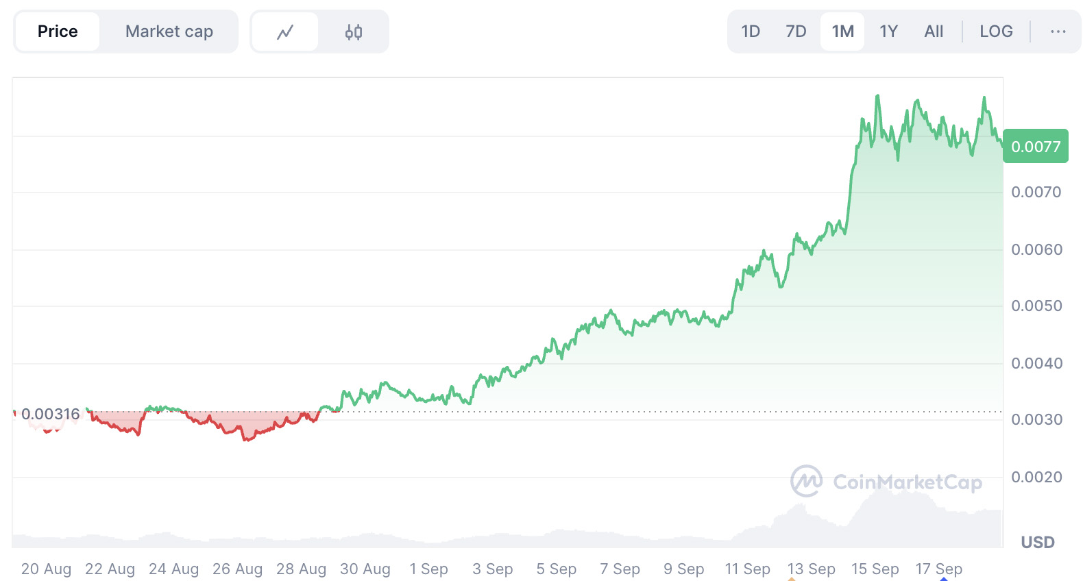 除了平台自身的增长之外,Pumpfun 还受益于模因币 (memecoin) 行业的普遍上涨。根据 CoinMarketCap 的数据,仅在过去 24 小时内,模因币的整体市值就上涨了近 8%。这一复苏也反映在模因币行业交易量飙升 81% 上。