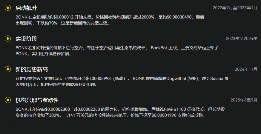 BONK 从危机应对到成为生态系统基石的旅程,展现了社群驱动项目的力量。该代币透过激进的慷慨与公平分配,解决了FTX 崩溃后低迷士气的真实问题。