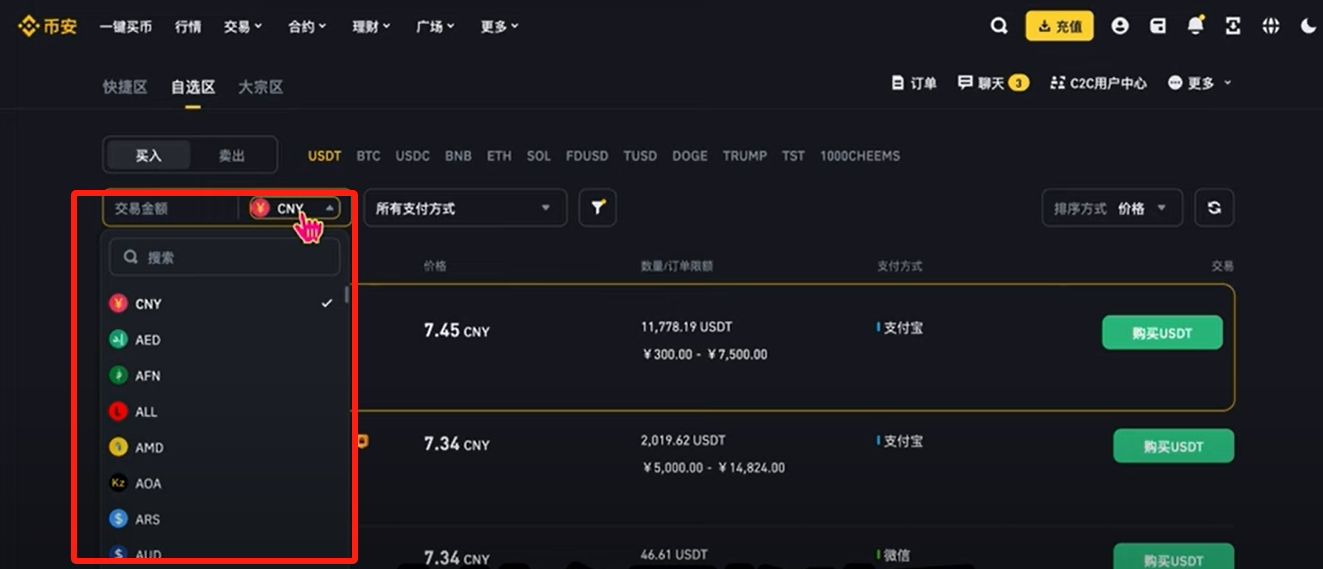 C2C交易支持各国的法币,比如说人民币、台币、欧元都有,所以你要买USDT是相当方便的。