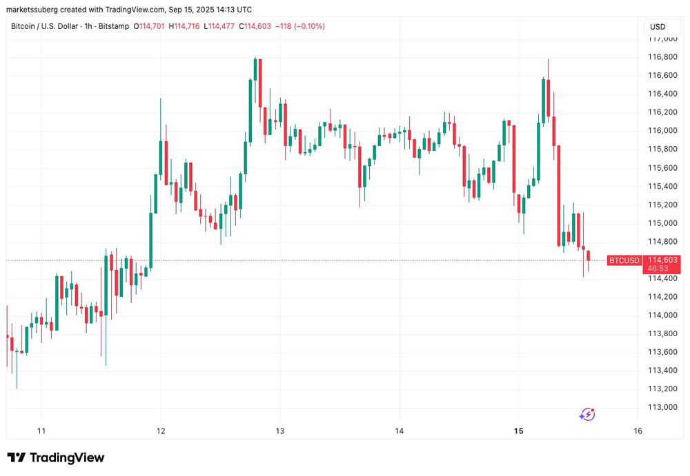 比特币走势与股票和黄金背离,周初日内下跌2%。分析人士希望即将到来的美联储利率决议能为BTC价格带来提振。隐性看涨背离增强了BTC价格上涨预期。据分析,比特币(BTC)在周一华尔街开盘时徘徊于115,000美元,价格仍有下行空间。
