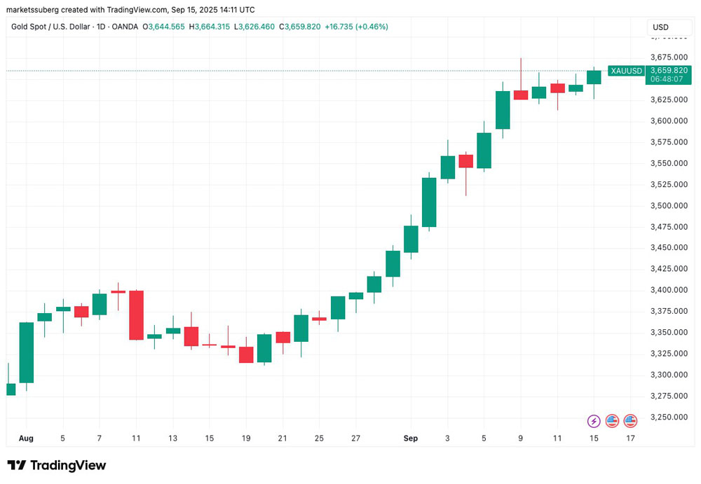 比特币走势与黄金和美股背离,标普500指数和纳斯达克综合指数均高开。黄金价格突破3,655美元,距离历史高点仅差不到20美元。