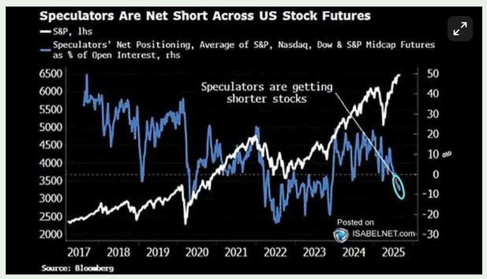 据Mosaic指出,大型投资者在各类股票期货中为净空头头寸,市场通常将该群体的持仓视为反向信号。