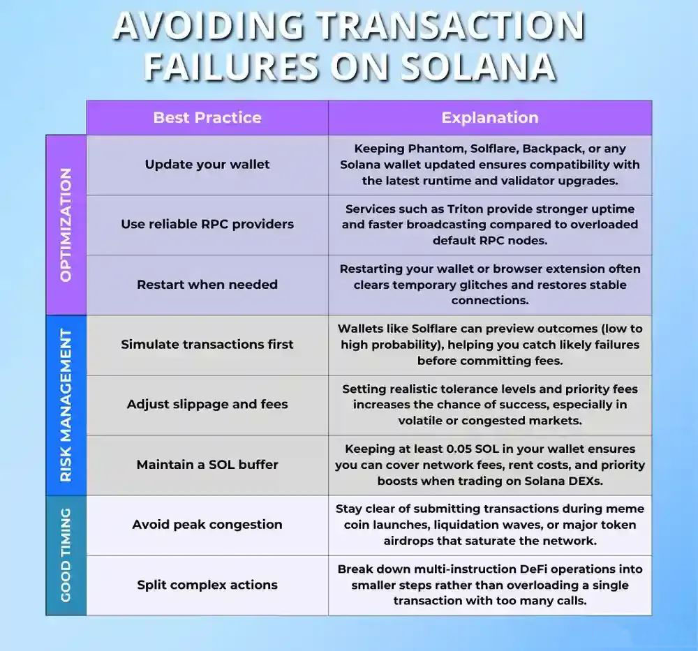 要避免 Solana 上的事务失败,需要在点击 "发送 "之前做好准备。通过采取一些预防措施,用户可以最大限度地减少错误,提高顺利执行的可能性。