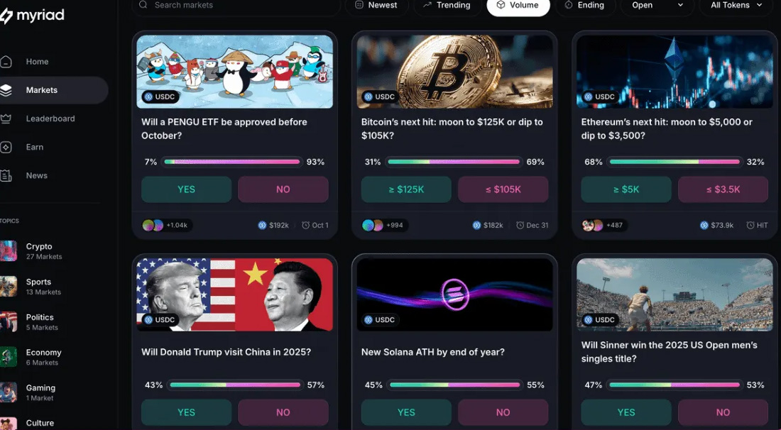 每周排行榜更新,分成五个段位(铜到钻石),对于小额用户来说十分友善。活跃度比仓位大小更重要。这对于非鲸鱼钱包来说非常有利。操作方式:每周进行小额交易并尝试创建一些市场。保持活跃的成本较低,最终活跃度高的用户受益最大。9. Myriad