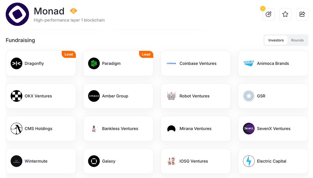 Monad是由Monad实验室打造的一个高性能Layer 1区块链项目,成立于2022年,核心团队由来自高频交易(高频交易)和技术领域的专家组成,包括首席执行官Keone Hon、首席技术官James Hunsaker和首席运营 官Eunice Giarta。通过多轮融资,Monad共筹集了2.44亿美元,其中2024年由Paradigm领投的2.25亿美元更是彰显了资本对其潜力的认可。