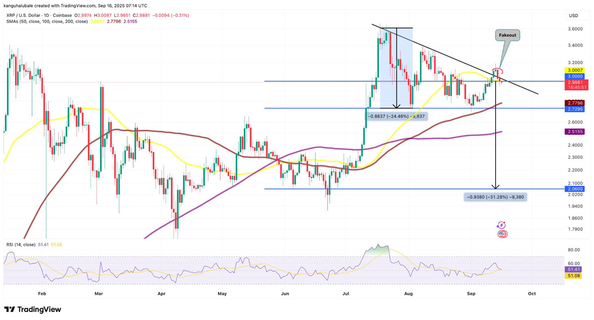 详细了解瑞波币(XRP)反弹停滞现3美元假突破,巨鲸持续抛压致上涨动能衰竭