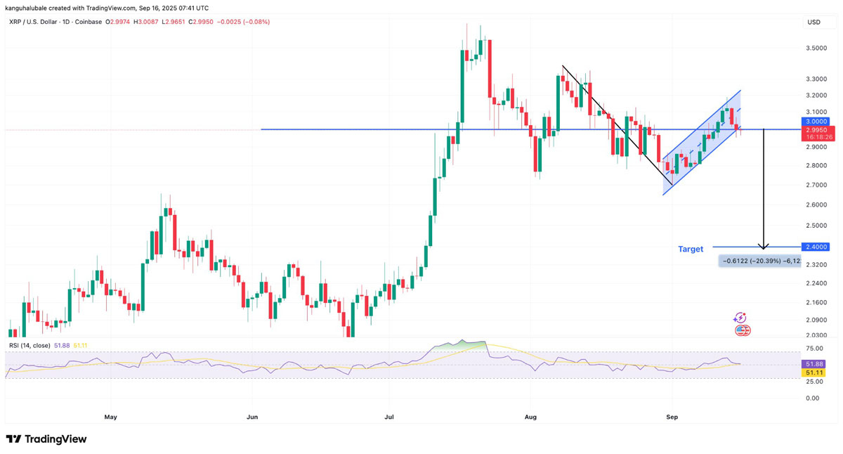 瑞波币未能守住3美元,表明价格仍面临下探至2.40-2.00美元的风险。大户继续抛售瑞波币。日活跃地址减少,显示交易活动和流动性下降。瑞波币(XRP)价格在3美元下方出现警示信号。日线图显示看跌技术形态,且大户持续抛售、网络活跃度降低。