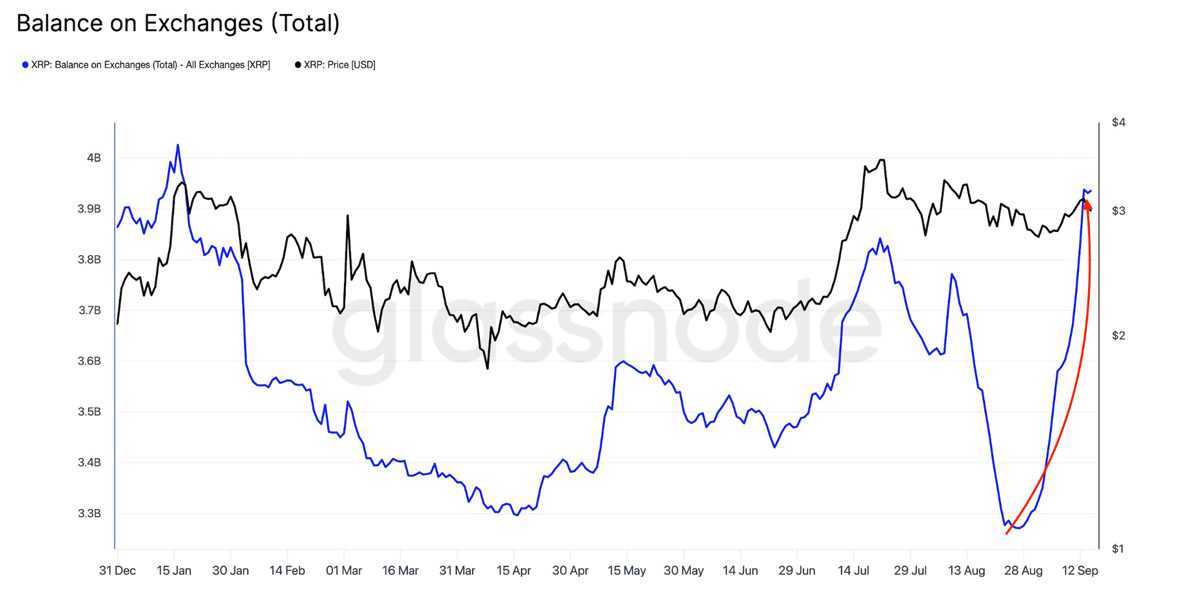 与此同时,Glassnode数据显示,瑞波币交易所储备大幅增加。