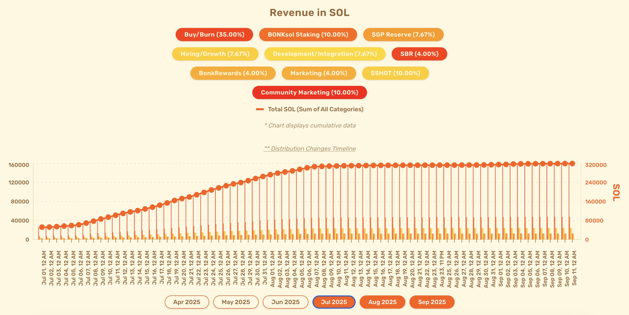 在经历市占率快速缩水后,BONK.fun通过多种方式进行自救。一方面,BONK.fun继续推动代币回购销毁机制以维稳生态。官网显示,截至9月11日,BONK.fun累计产生了超31.9万枚SOL,其中35%用于回购和销毁BONK代币,持续强化通缩逻辑。同时,财库策略也为BONK注入新叙事,纳斯达克上市公司Safety Shot在不久前启动了BONK财库战略,完成了500万美元现金与2500万美元BONK代币融资(由 BONK创始成员支付)。