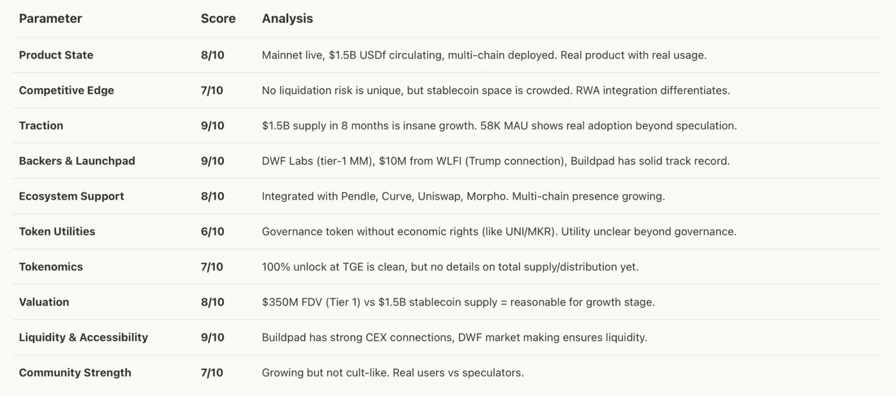 TGE 与交易所上市:凭借 DWF 的资源,大概率将登陆币安、OKX、Bybit 等主流交易所。跨链扩展:部署至 Solana 网络或使用户规模翻倍。RWA 产品上线:集成代币化国债等资产。中期催化因素(3-12 个月)