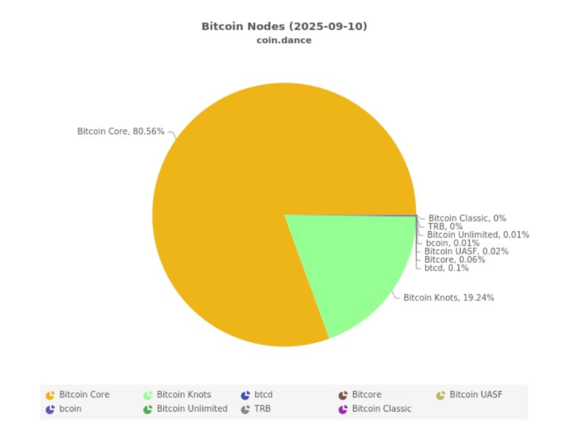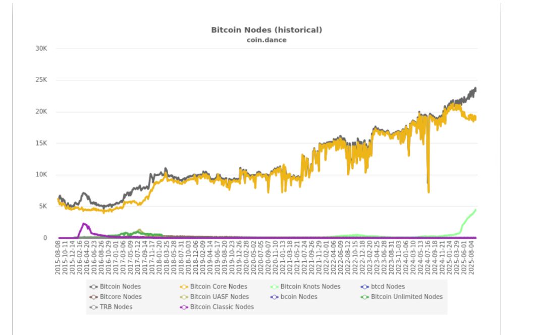 截至2025年,Knots节点现已占据全网近20%的份额,较2024年底约1%的市场占有率实现了近乎垂直的增长。