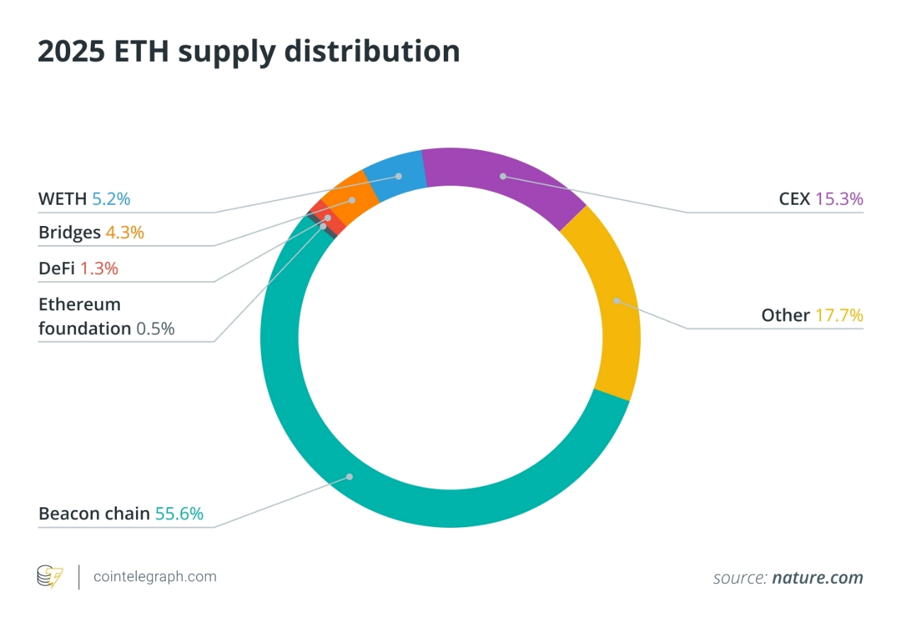 正如上文简要探讨的那样,截至 2025 年 9 月 2 日,排名前十的 ETH 地址持有 7180 万枚以太币(约占总供应量的 60%)。