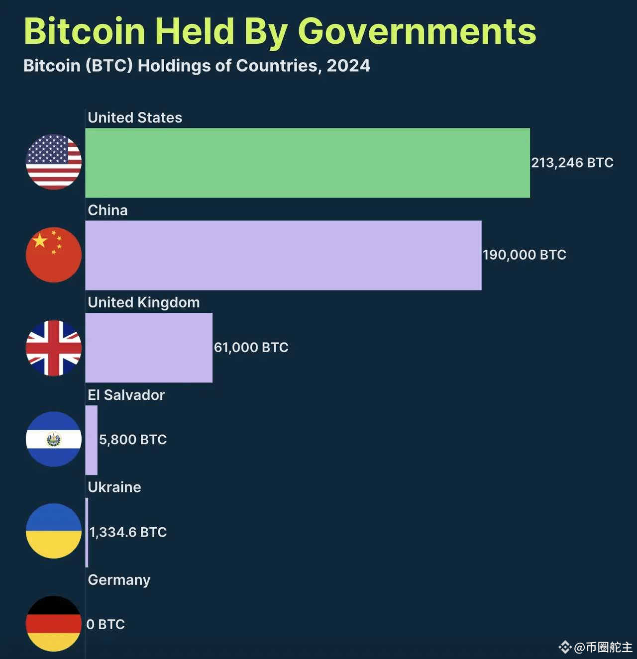 本研究舵主分析了截至 2024 年 8月 23 日,各国政府比特币持有量最大的数据,这些数据来自 ArkhamIntelligence.com 和 Bitcointreasuries.net,以及路透社、BlockWorks.co 和 Bitcoin.com 的新闻文章。持有比特币最多的五个政府是美国、中国、英国、德国、萨尔瓦多和乌克兰。美元 (USD) 持有量是使用比特币价格 69,482.75 美元计算的。