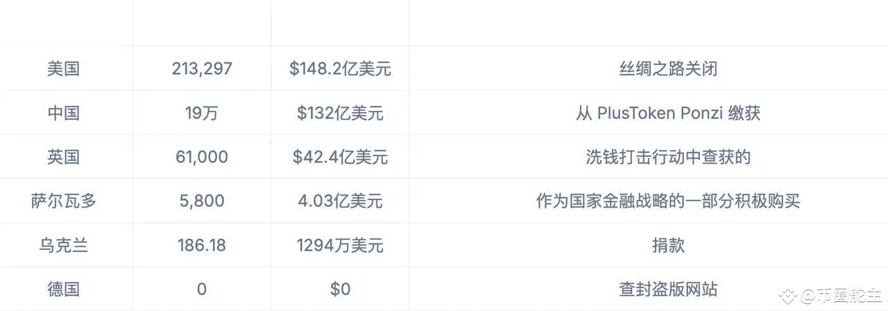政府加密货币持有量反映了执法行动和金融战略的复杂相互作用。持有大量比特币的前五个政府是: