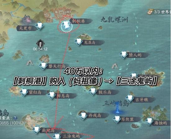 试了一下,这周【刺桐港】妈祖像去【三涂鬼屿】的价格比【苏勿里】高一点点,附加条件仍然看p4各岛屿产品类型,就近购买