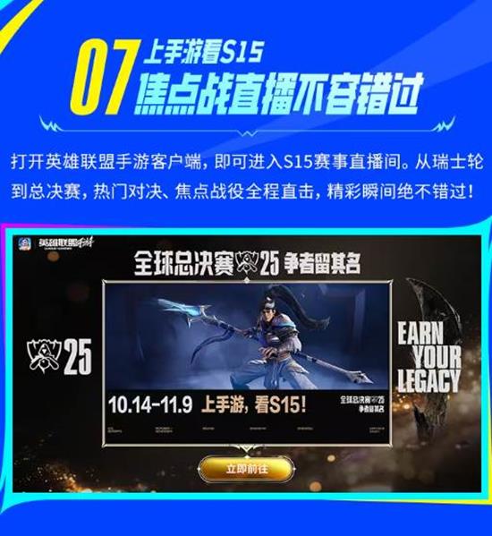 活动内容:打开英雄联盟手游客户端,即可进入S15赛事直播间。从瑞士轮到总决赛,热门对决、焦点战役全程直击,精彩瞬间绝不错过!